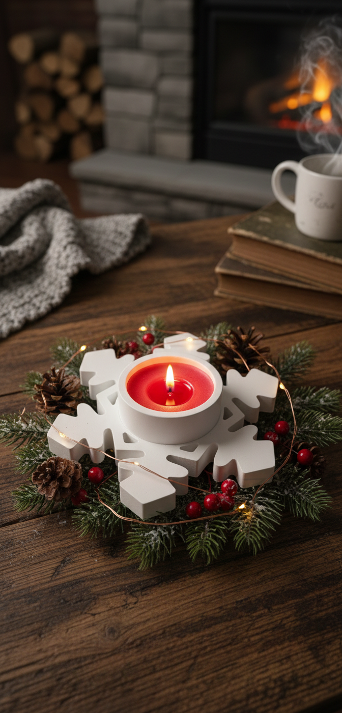 Kışın en güzel ambiyansı… O anı yakalamak için tek ihtiyacınız olan yumuşak bir battaniye, sıcak bir fincan kahve ve Kar Tanesi Mum Tutucu. Soğuk günlere sıcak bir mola verin.
