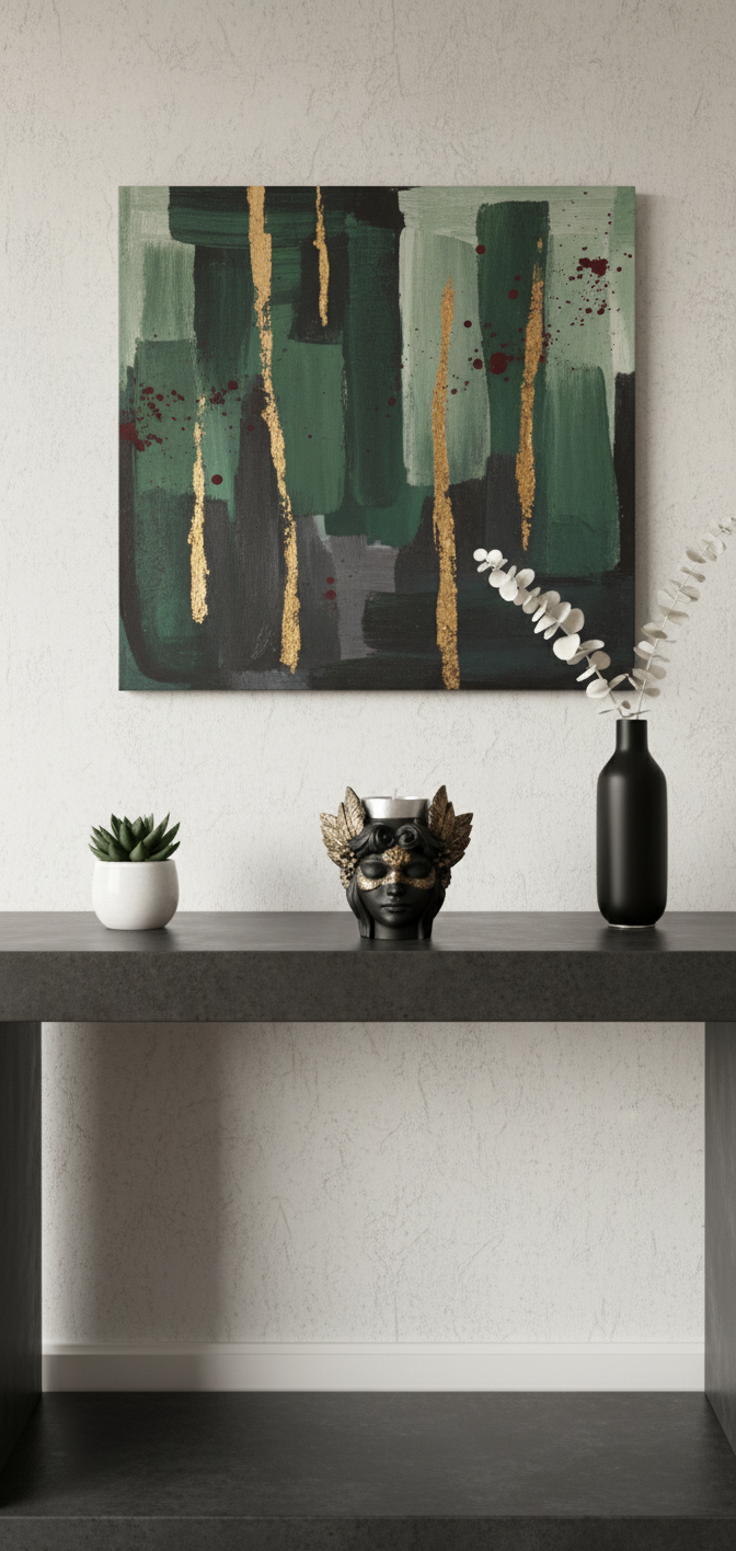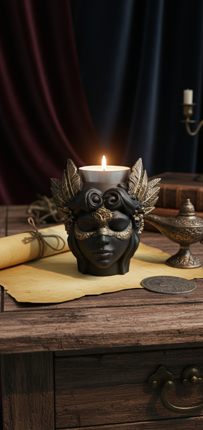 Sanatsal ve gizemli bir hava taşıyan maskeli kız figürlü tealight tutucu, loş ışıkta romantik bir atmosfer yaratır. Beton harcından el emeği ile üretilmiştir.